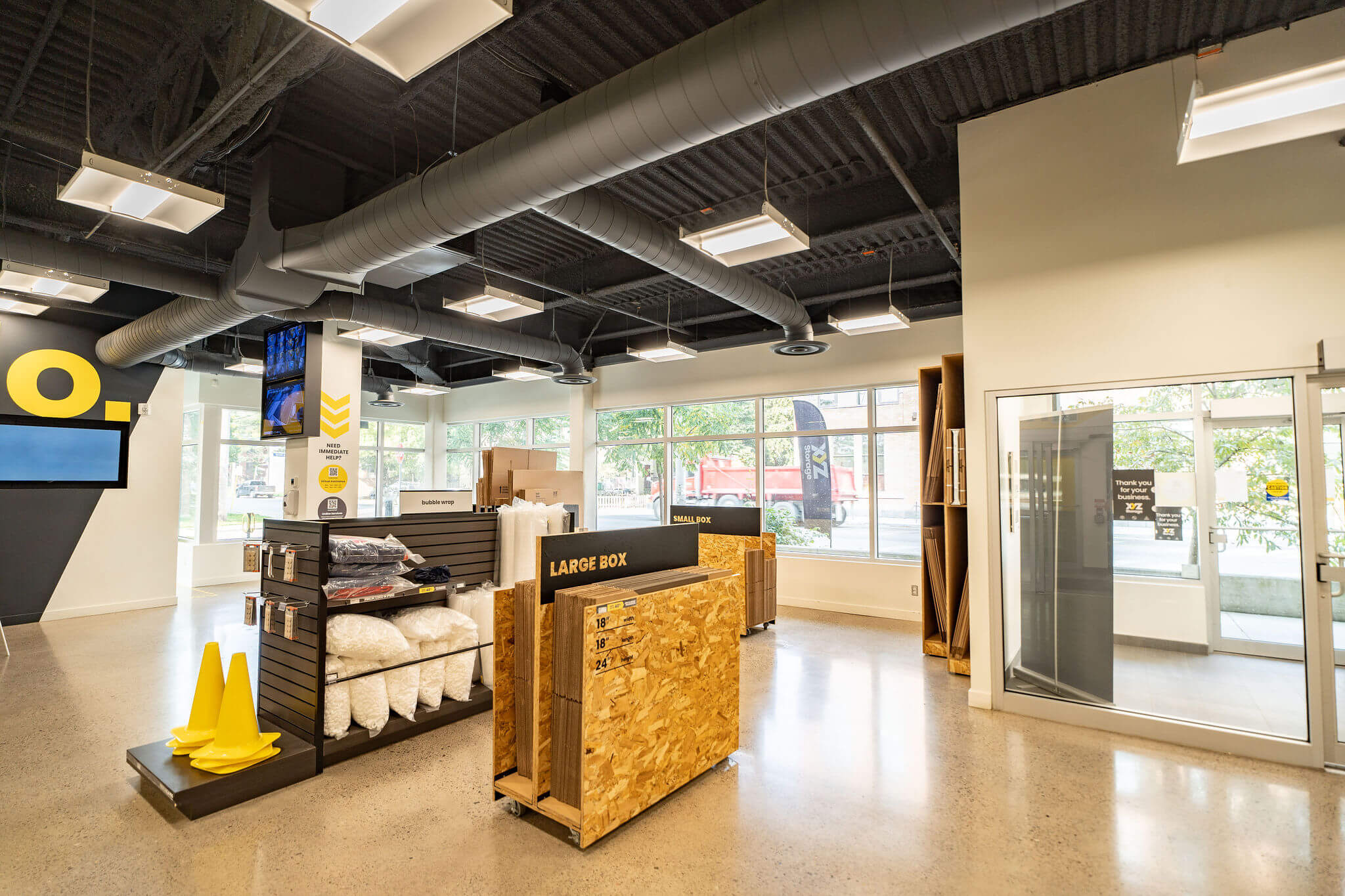 The Downtown Toronto XYZ storage self-storage facility is our newest state-of-the-art facility built with our customers in mind, showcased through our affordable units and unique drive-through feature. Are you interested in seeing more? View photos of our exceptionally designed storage facility below. We invite you to check out our Downtown Toronto self-storage facility on Eastern Ave. if you have any questions about renting a storage unit.